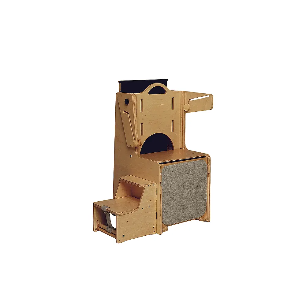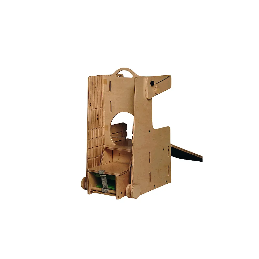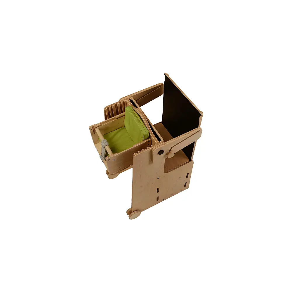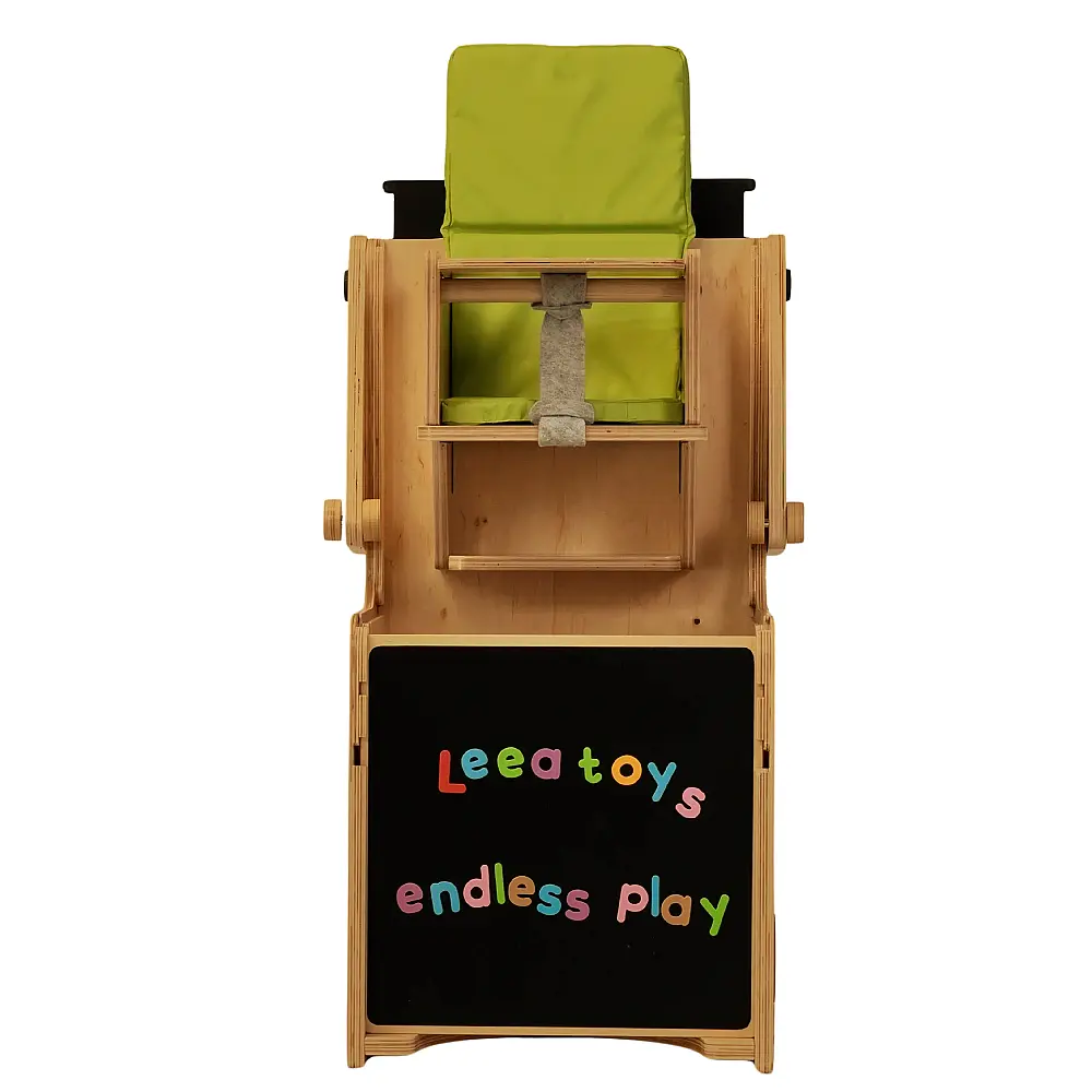 Chaise haute avec coussin: L'escalier de la tour peut également être utilisé comme chaise haute avec une table amovible. Si nécessaire, il devient également un trotteur !